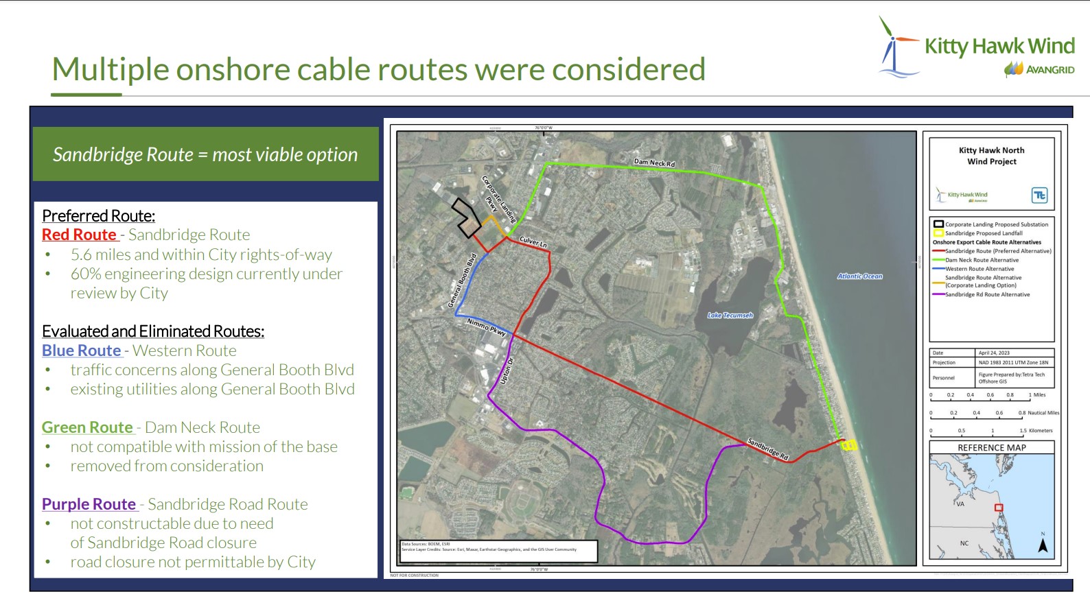 The cable corridor will not be final until after review and approval by the Virginia State Corporation Commission and the Bureau of Ocean Energy Management.